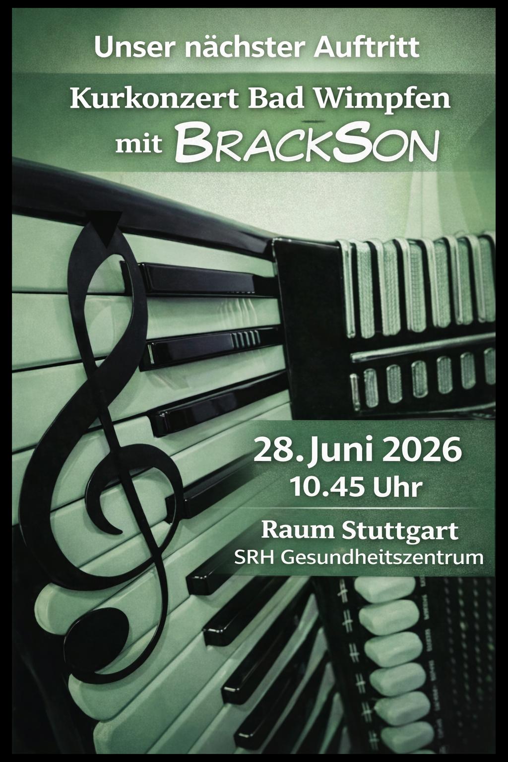 Kurkonzert Bad Wimpfen im SRH Gesundheitszentrum, Raum Stuttgart, Haus F (Osterberg), 10:45 – 11:45 Uhr; Eintritt frei!